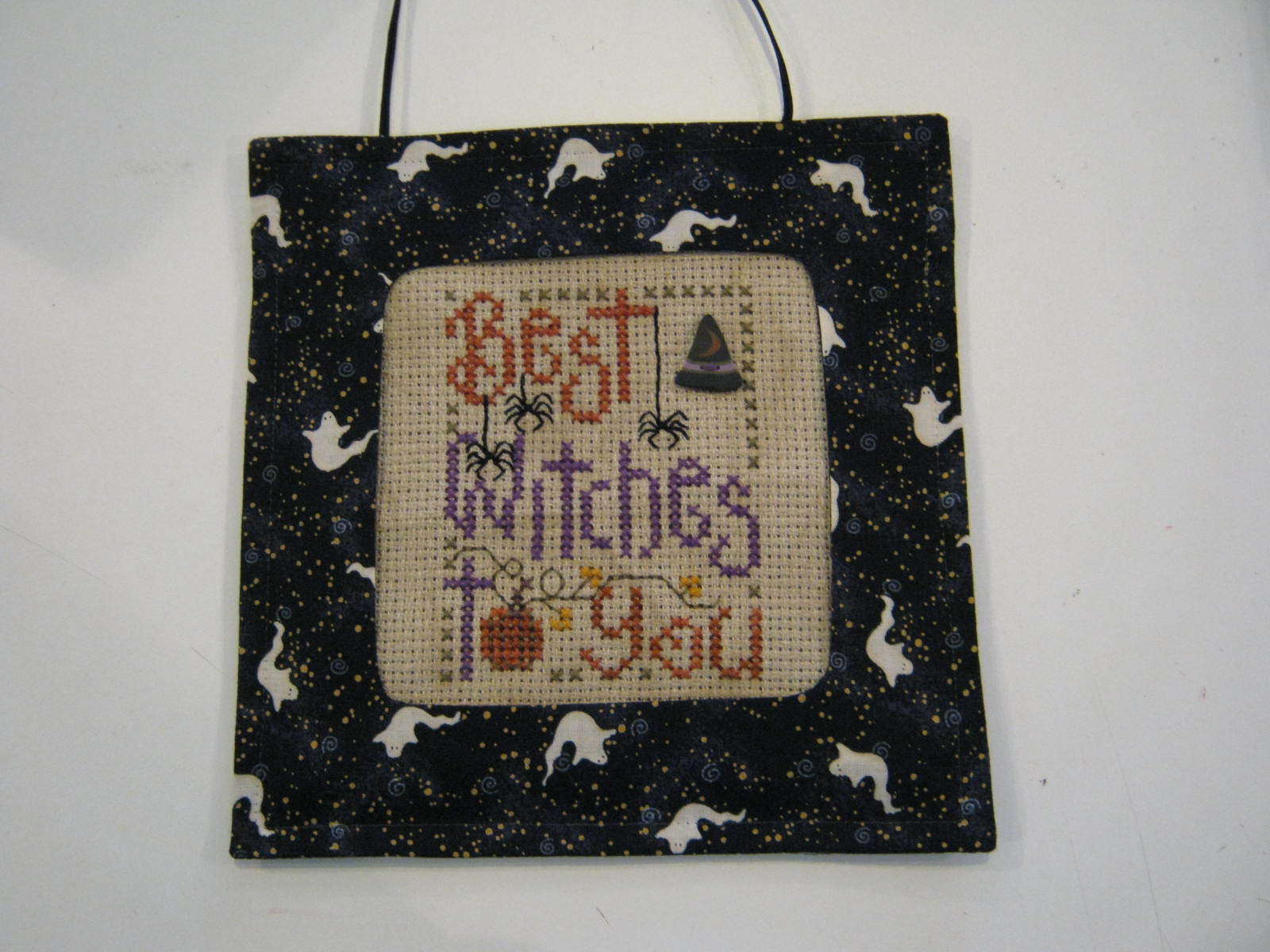 Sara Guermani's "Halloween". Sara is from Italy & does the cutest designs. Most come with hand-painted buttons. This one has 4 buttons, 2 pumpkins & 2 bags. Ray framed it, I think it's adorable!
