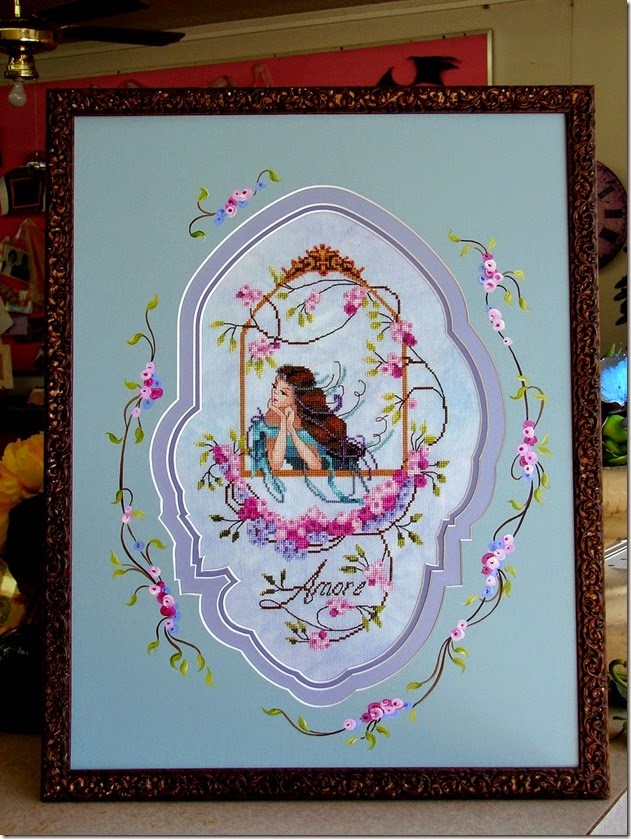 Nora's "Arezzo" design from her trip to Italy. I changed it to say "Amore" and it was framed by Jill Rensel. She's really pretty - much prettier in person! Started in Feb. 2014, finished in April.